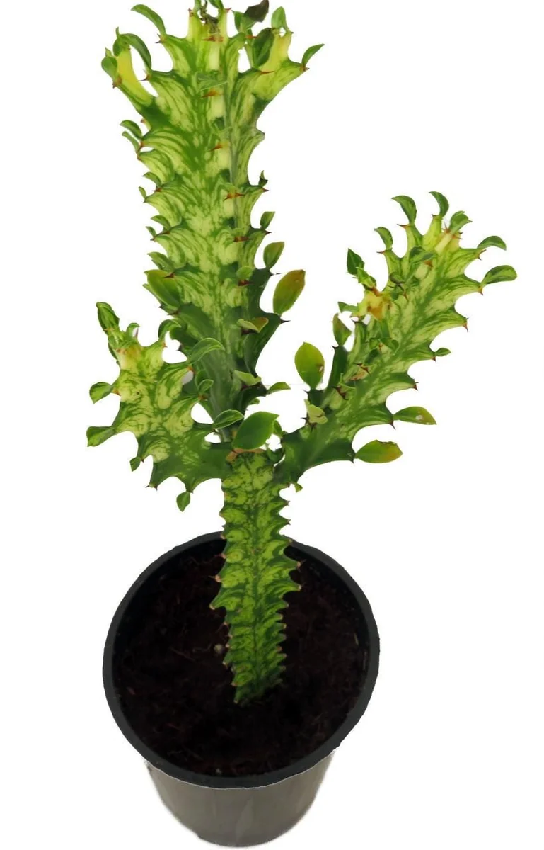 - Q: Will the variegated colors intensify with more light? A: Yes, providing ample bright light will help to bring out the vibrant green and reddish-purple variegation of the stems, making your variegated Euphorbia Trigona more striking.