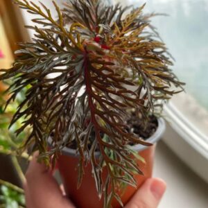 The Fern Leaf Begonia Plant Potted is a remarkable addition to any indoor garden. This houseplant is celebrated for its intricate and stunning foliage, making it a favorite among plant enthusiasts. With its variegated leaves and unique patterns, this begonia adds a touch of elegance to your living space.