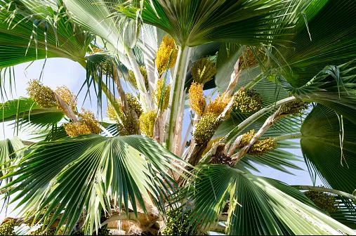 - Q: Does this palm produce fruit? A: Yes, mature Fiji Fan Palms produce small, round, dark fruits. These are generally not considered edible for humans but are part of the palm’s natural reproductive cycle.