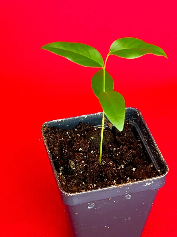 This offering is for one fingersop live plant, a seedling starter tree measuring approximately 2-5 inches tall (pot height not included). It comes potted in a 2.5-inch square pot, providing a healthy root system for transplanting. The Meiogyne cylindrocarpa tree is known for its moderate growth rate, especially in its initial stages, eventually reaching a mature height of 12-36 feet (4-12 meters) with a spread that reflects its open habit. This evergreen rainforest tree will develop dark green foliage and produce elongated, cylindrical fruits up to 1.3 inches long and 0.63 inches in diameter, ripening to a vibrant red or orange. While it can take 5-6 years to fruit from seed, the reward of growing your own paipai fruit tree is immense. The plant is hardy to USDA Zone 9, tolerating temperatures as low as 28-30°F, making it suitable for warmer climates or protected cultivation in cooler areas. Each plant is grown organically, ensuring a healthy start for your tropical collection.