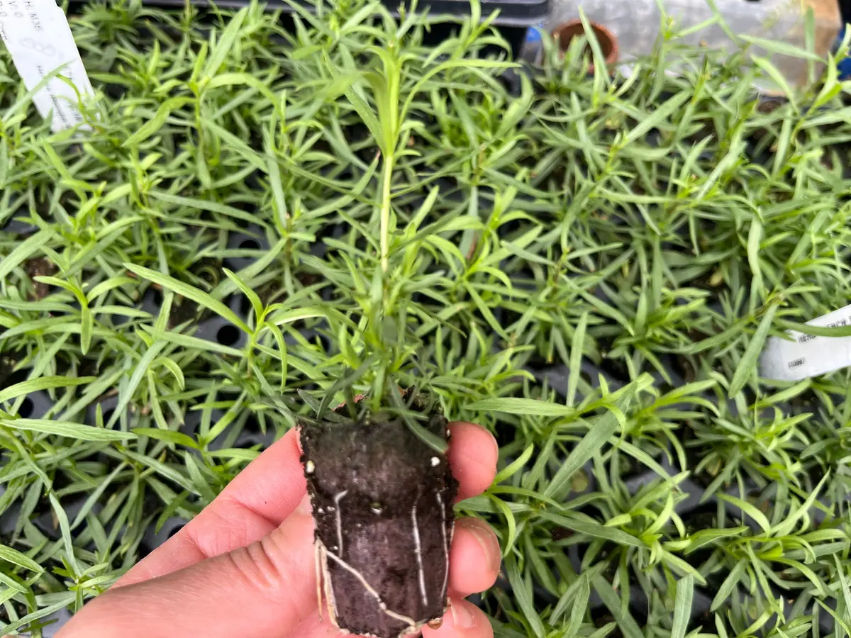 Our French Tarragon live plant is shipped as a robust seedling, typically arriving in a small plug-size container measuring approximately 1 inch x 1 inch x 1 1/4 inches. Plant sizes may vary slightly due to their natural growth patterns, but each plug is selected for a strong, healthy root system, which is the most critical feature for successful establishment. Upon arrival, the plant will be ready for transplanting into a larger pot or directly into your garden bed, depending on your climate and growing preferences.