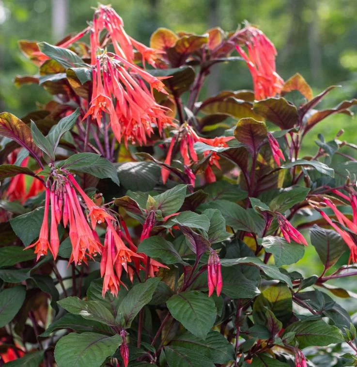 Introduce a splash of exotic beauty to your outdoor space with the Fuchsia Gartenmeister live plant. This captivating variety, scientifically known as Fuchsia triphylla, is distinct from traditional fuchsias due to its remarkable heat tolerance and continuous display of striking coral-orange tubular blooms. Unlike many fuchsias that prefer cooler climates, the fuchsia triphylla plant thrives in warmer conditions, making it a versatile choice for a wider range of gardeners. Its rich, dark green foliage provides a perfect backdrop for the vibrant flowers, creating a truly eye-catching spectacle. This particular offering is a young starter plant, ready to establish itself and grow into a magnificent specimen.