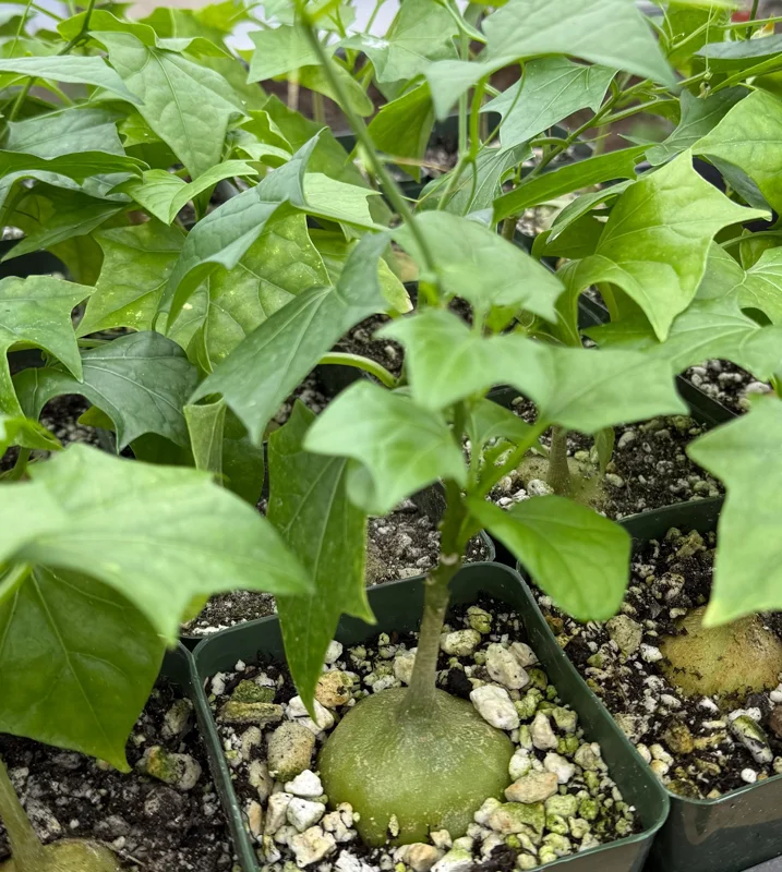 - Heart-Shaped Foliage: The delicate, heart-shaped leaves provide a beautiful contrast to the robust caudex, adding a touch of softness and lushness to its overall appearance. This combination creates a visually appealing plant.