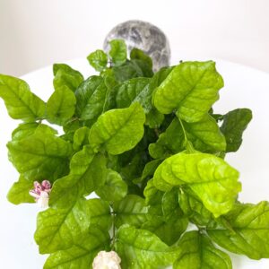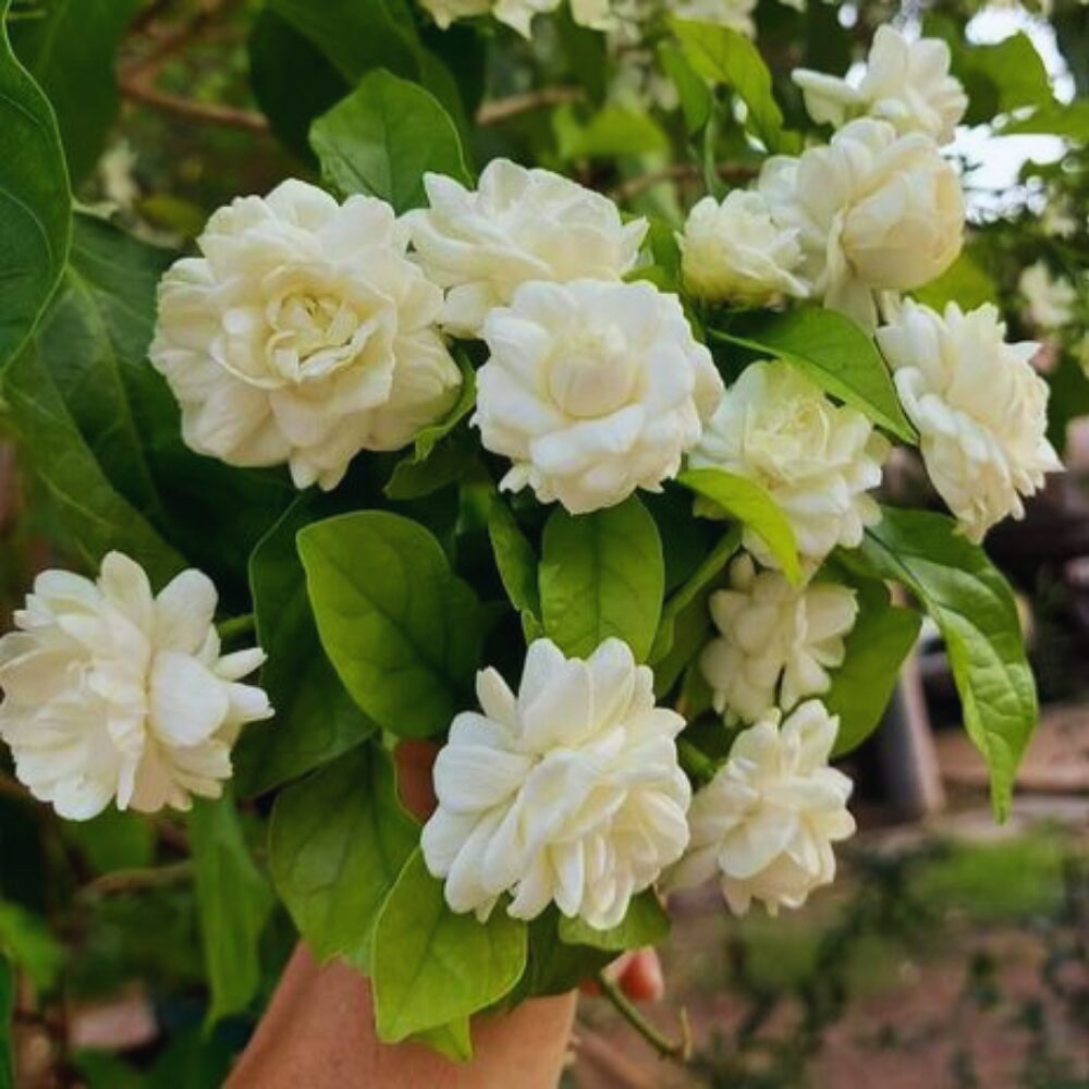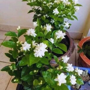 As a cultivar of Jasminum sambac, this plant is celebrated for its intoxicating fragrance and unique flower structure. The tightly packed blossoms resemble miniature rosettes, providing a luxurious aesthetic. Ideal for pots, borders, or garden beds, it can grow up to 2-3 feet tall with proper care.