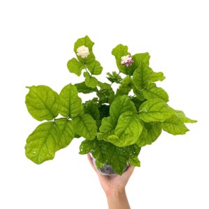 The Grand Duke of Tuscany Arabian Jasmine is a stunning evergreen shrub that captivates with its fragrant, double-petaled white blooms. This exquisite plant is perfect for both indoor and outdoor settings, bringing a touch of elegance and charm.