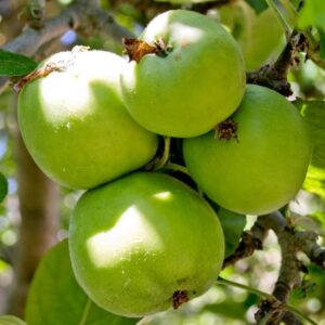 The Granny Smith Apple tree is a favorite among fruit enthusiasts for its large, bright green apples that remain fresh for a long time after harvest. This variety produces a unique blend of tart and sweet flavors, making it ideal for various culinary uses.
