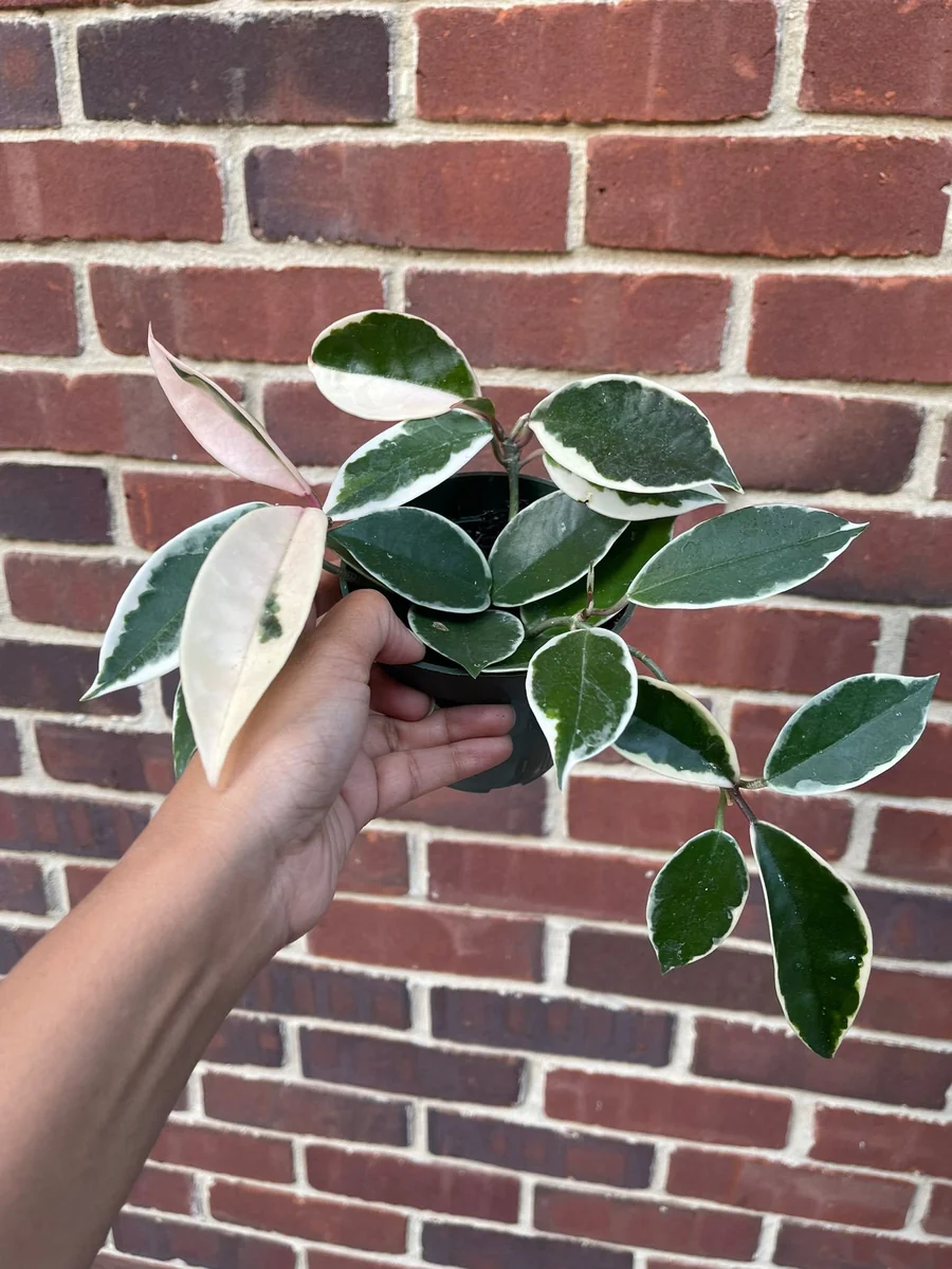 Your Hoya Krimson Queen live plant will arrive in a 3-inch nursery pot, providing a healthy start for its new home. At this size, it’s perfect for transplanting into a decorative pot or hanging basket where its vining nature can be best displayed. Hoya Carnosa ‘Krimson Queen’ is a moderate grower, with vines that can extend several feet over time, depending on growing conditions and support. The leaves are typically 2-4 inches long, showcasing their characteristic variegation. While the exact height and spread will vary based on individual growth and training, you can expect a compact yet vigorous plant that will gradually fill its space.