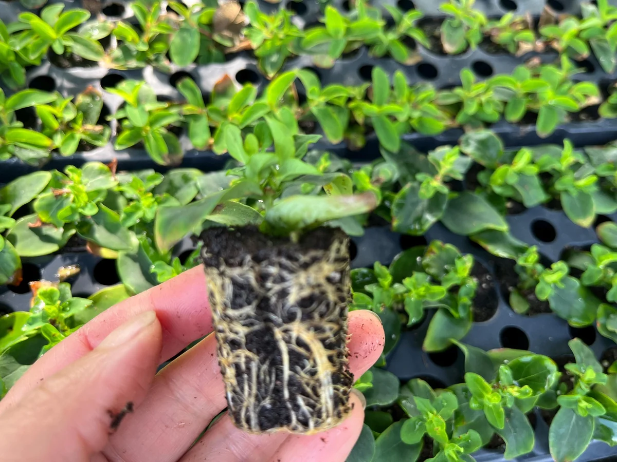 Each hypericum berries live plant is provided as a healthy starter seedling, typically in a small 1″ x 1″ x 1 1/4” container or plug. Plant sizes will naturally vary slightly, reflecting their organic growth. These young plants are ready for transplanting into your garden or a larger pot, where they will establish their root system and begin to grow. A mature hypericum garden plant can reach heights of 2-4 feet with a similar spread, depending on the specific cultivar and growing conditions. The growth rate is moderate, with significant development and berry production typically observed within the first two years after planting. The delightful berries are produced in late summer and early fall, offering a long season of interest.