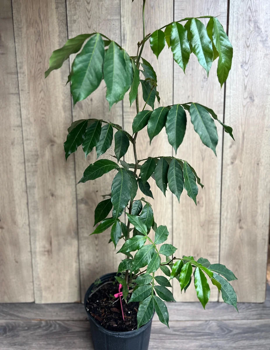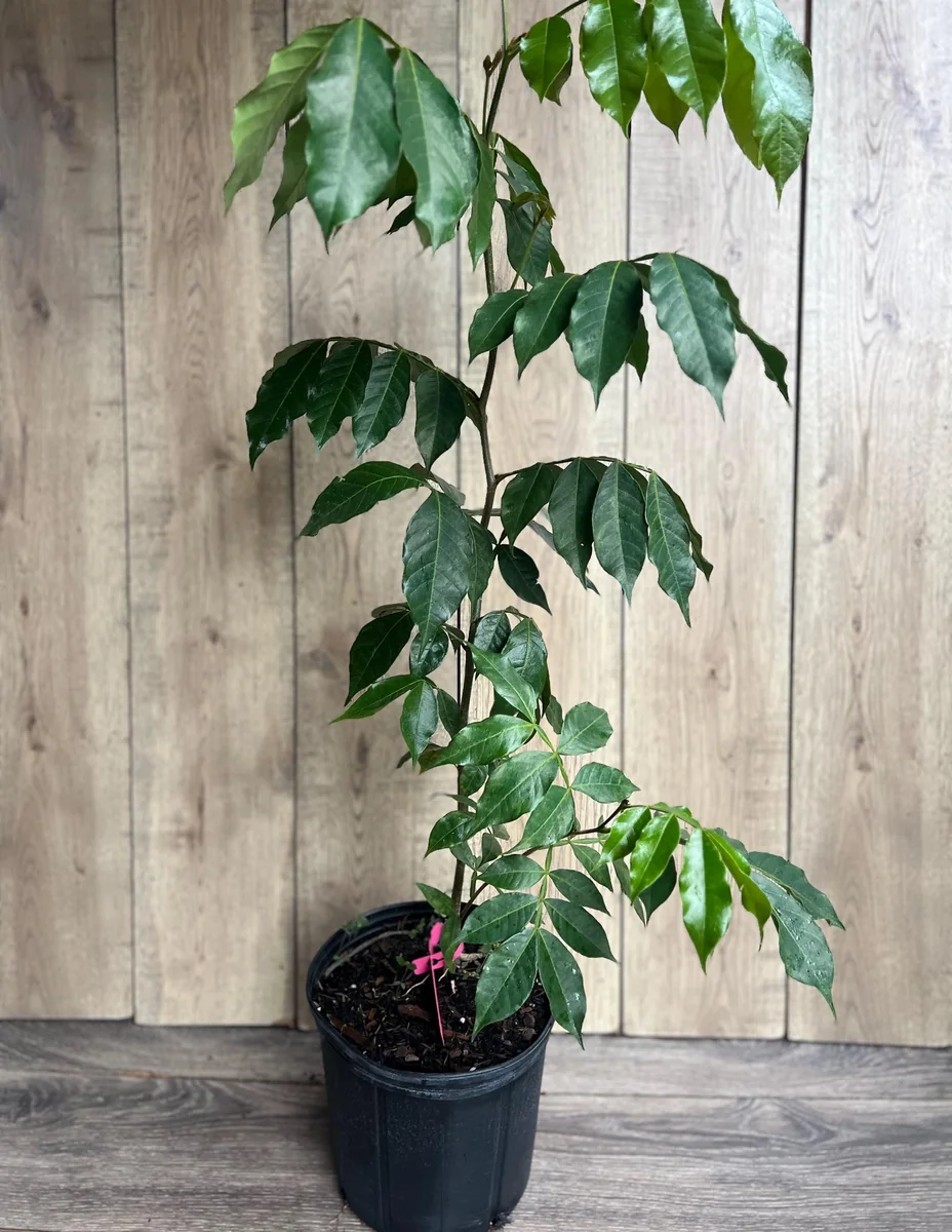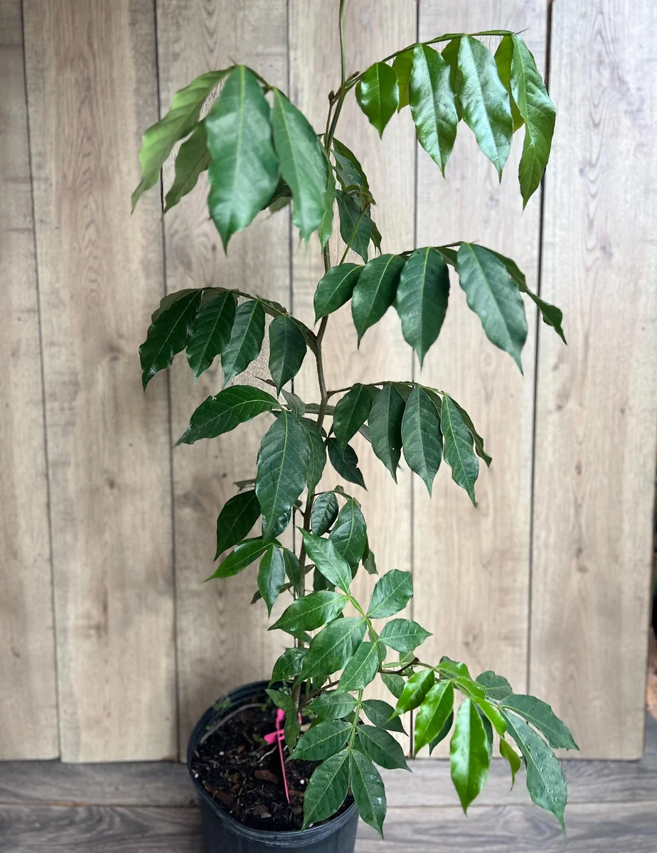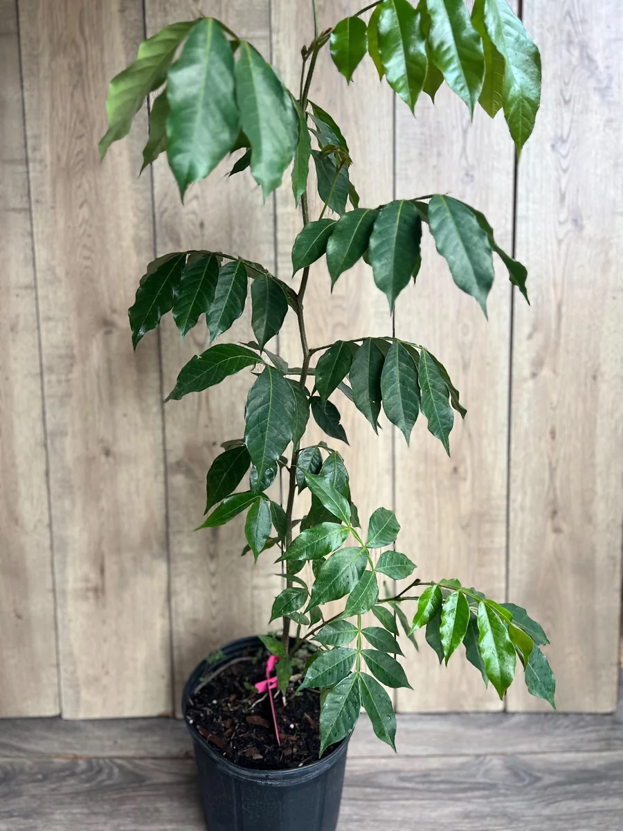 The pods, filled with a soft, cotton-like pulp, will be ready for harvest when they begin to split open, signaling their ripeness. This exotic fruit tree boasts a moderate to fast growth rate, quickly becoming a prominent feature in your landscape. It’s an excellent choice for those looking for a substantial and productive tree that delivers both visual appeal and delicious, refreshing fruit.