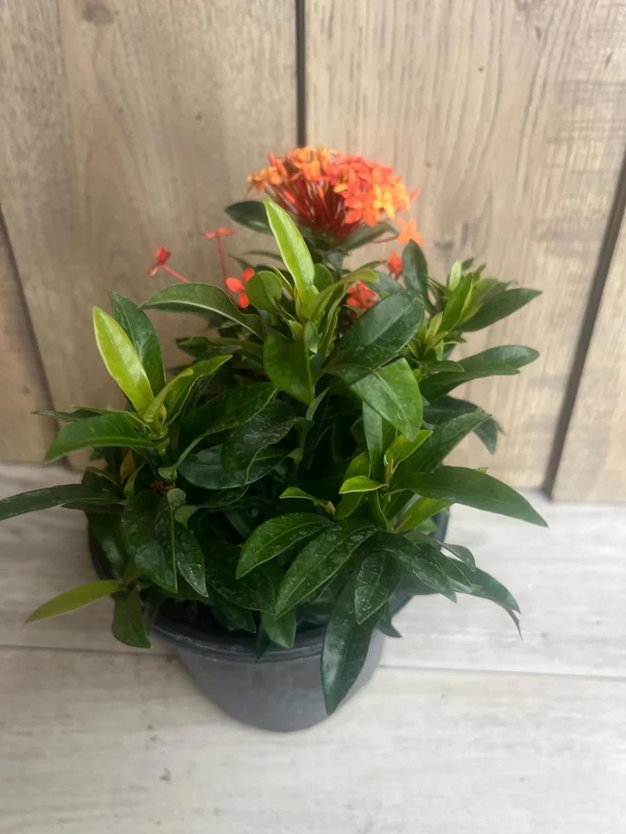 • Q: How long until it blooms? A: If provided with adequate sunlight and care, your ixora should start producing its fiery orange blooms during the warmer months, often blooming continuously throughout spring, summer, and fall.