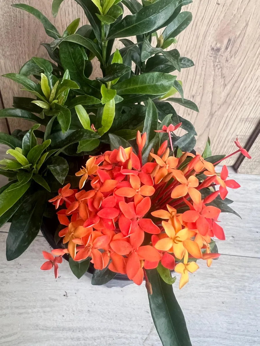 • Tropical Ambiance: Instantly transform any space into a tropical paradise. The exotic look and feel of the Ixora ‘Carmen Orange’ evoke images of warm, sunny climates, creating a relaxing and inviting environment.