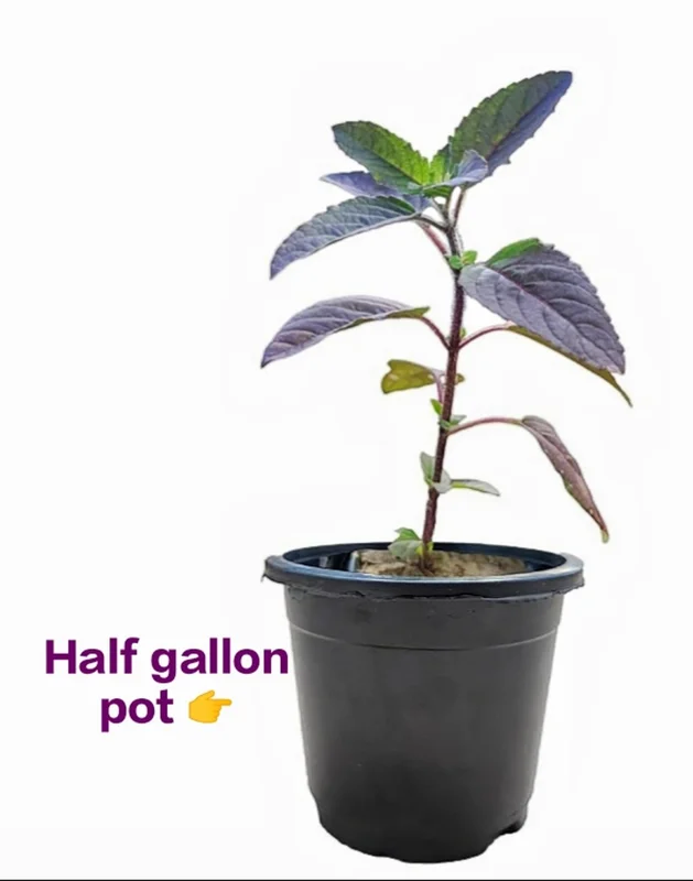 This offering is for one healthy Krishna Tulasi live plant, carefully nurtured and shipped in a sturdy half gallon pot plant. At the time of shipping, plants typically stand between 6-12 inches tall, measured from the base of the pot. The plant will continue to grow and can reach heights of 1-3 feet when mature, depending on growing conditions and pruning. It is shipped as a well-rooted, established plant, ensuring a smooth transition to your home or garden. Krishna Tulasi is known for its moderate growth rate, and with proper care, it will provide a continuous supply of fresh, aromatic leaves for your spiritual and culinary needs. Expect the plant to establish itself quickly and begin producing new growth within a few weeks of arrival.