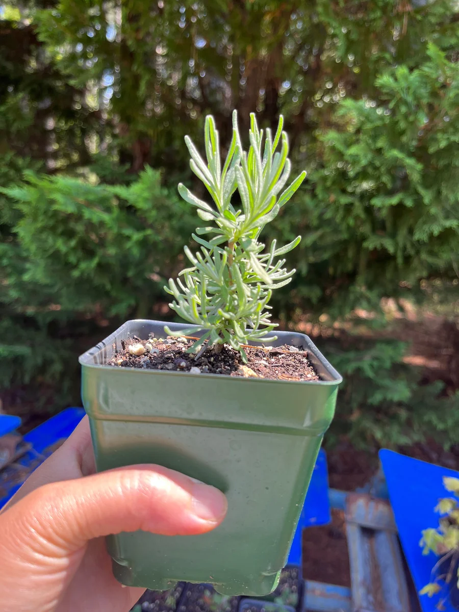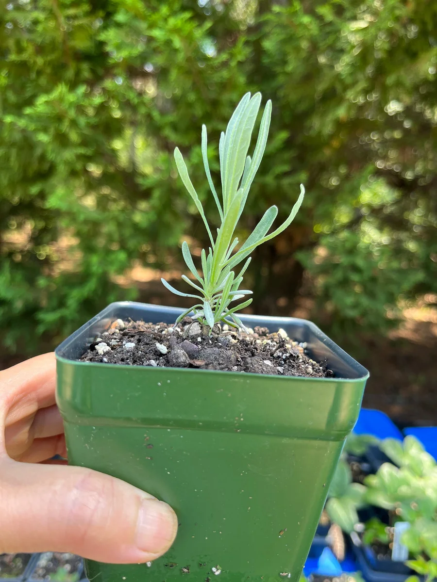 - Q: What size pot does it come in? A: Each lavender live plant is shipped in a 3 1/4-inch pot. These are well-rooted starter plants designed to be transplanted into a larger container or directly into your garden upon arrival.