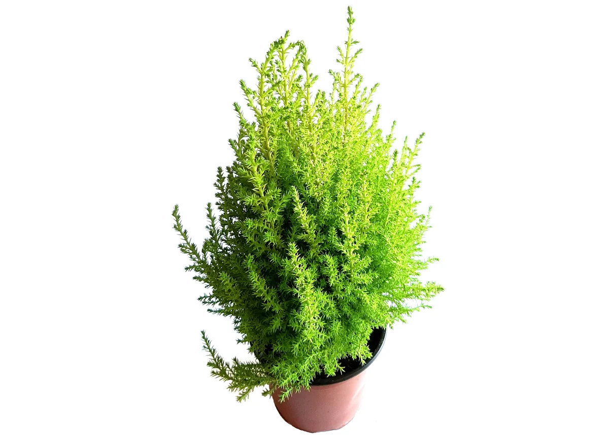 - Vibrant Golden Foliage: The bright, golden-yellow leaves of the goldcrest cypress plant provide a stunning visual contrast, adding a cheerful and exotic touch to any room or garden setting. This coloration remains year-round, ensuring continuous beauty.