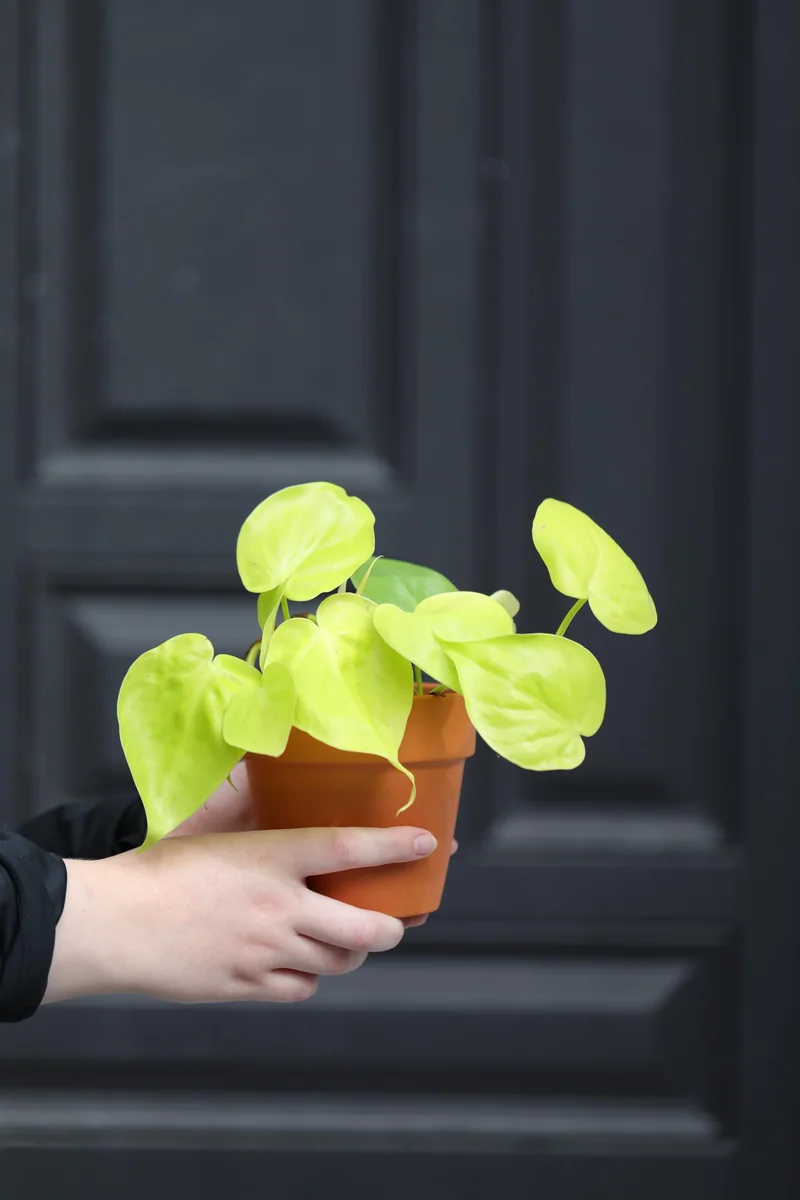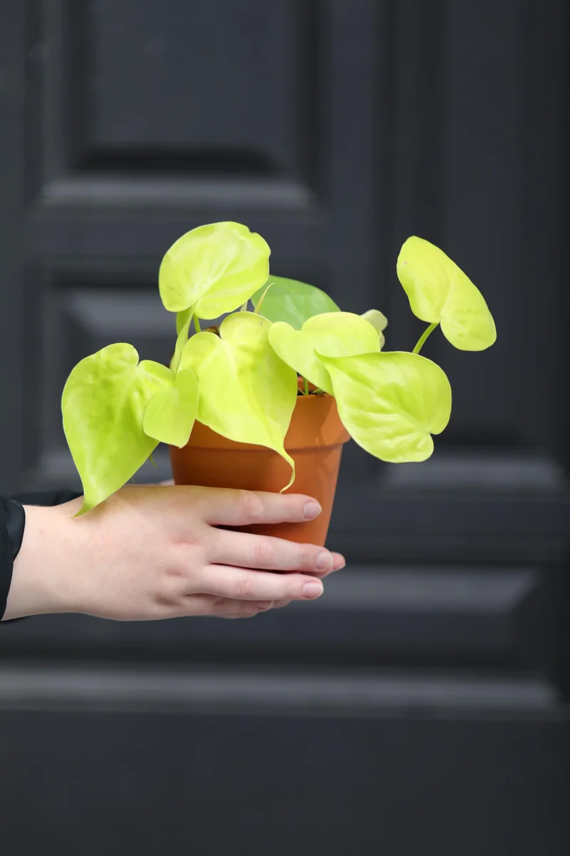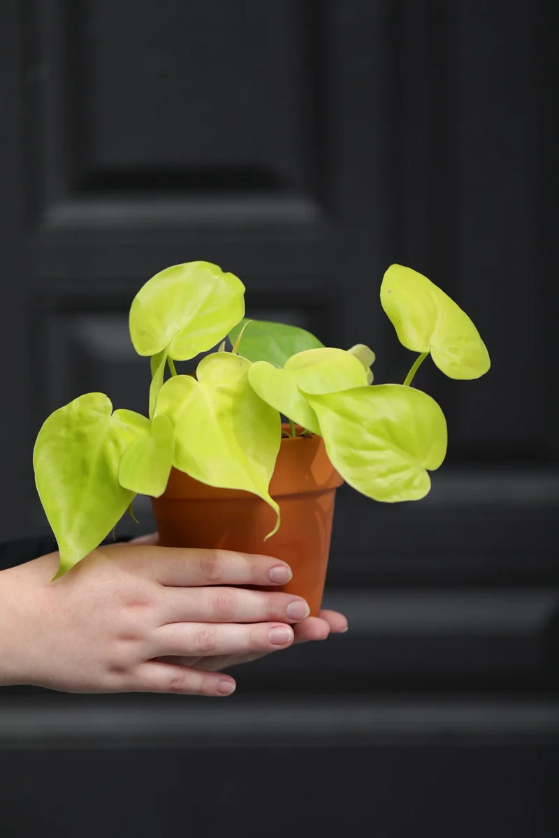 Water your lemon lime philodendron live plant when the top 1-2 inches of soil feel dry to the touch. It’s better to slightly under-water than over-water, as philodendrons are susceptible to root rot. Ensure that the pot has adequate drainage holes to prevent water from sitting at the bottom. When you water, do so thoroughly until water drains from the bottom of the pot. During winter months or periods of lower light, reduce watering frequency as the plant’s metabolic activity slows down. Always check the soil moisture before watering again.