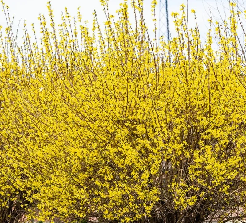 Watering is particularly important during the first growing season to help establish a strong root system. Water regularly and deeply, ensuring the soil remains consistently moist but not soggy. Once established, the forsythia bush is quite drought-tolerant, though supplemental watering during prolonged dry spells will benefit its overall health and blooming performance. Fertilize in early spring with a balanced, slow-release granular fertilizer formulated for flowering shrubs. Prune your forsythia immediately after it finishes flowering in spring. This is crucial because forsythia blooms on old wood (the previous year’s growth). Pruning too late in the season or in winter will remove the flower buds for the following spring. Remove about one-third of the oldest, heaviest stems at ground level to encourage new growth and maintain an open, vigorous plant. You can also lightly shape the shrub as needed. This yellow flowering shrub is hardy in USDA Zones 5–8, tolerating winter temperatures down to -20°F (-29°C). Protect younger plants in the colder end of its hardiness range with a layer of mulch around the base.