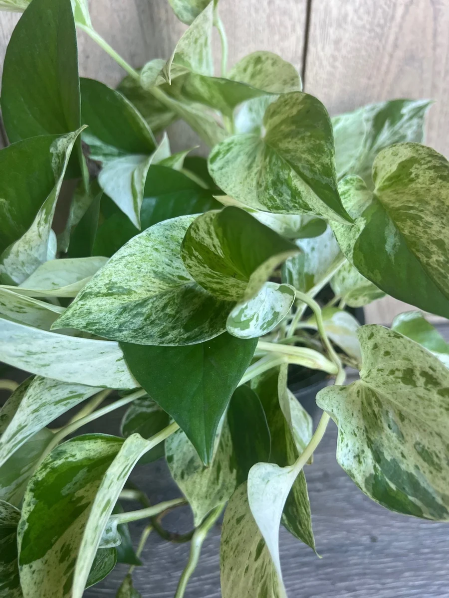 Introduce a touch of sophisticated greenery to your living space with this exquisite Marble Queen Pothos live plant. Known for its stunning white and green variegated foliage, the Marble Queen Pothos (Epipremnum aureum ‘Marble Queen’) is a highly sought-after houseplant that brings a vibrant, almost painted look to any room. Each leaf features a unique pattern, reminiscent of monochromatic stained glass, making every plant a living piece of art. This particular specimen comes in a 6 inch pot, ready to thrive and cascade beautifully in your home or office. As one of the easiest indoor plants to care for, the Marble Queen Pothos live plant is perfect for both seasoned plant enthusiasts and those new to the world of houseplants, offering lush beauty with minimal effort.