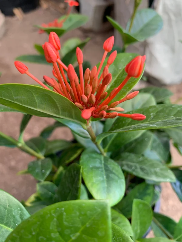 Watering: Consistent moisture is key for healthy Ixora. Water thoroughly when the top inch of soil feels dry to the touch. Avoid letting the soil dry out completely, but also ensure it’s not waterlogged, as this can lead to root rot. During the growing season (spring and summer), you may need to water more frequently. Reduce watering slightly in the cooler months. The vibrant red Ixora plant care routine includes regular watering, especially during dry spells.