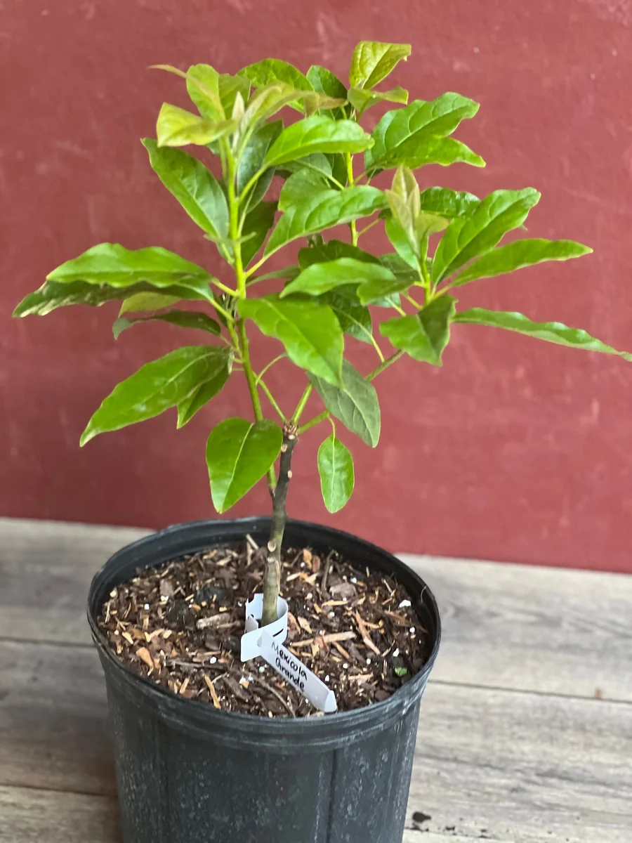 Mexicola Grande trees have a vigorous, upright, and spreading growth habit. The leaves also possess a pleasant anise aroma.Mexicola Grande is the only avocado cultivar with edible skin and leaves. The leaves are used to impart a unique flavor in Mexican recipes.