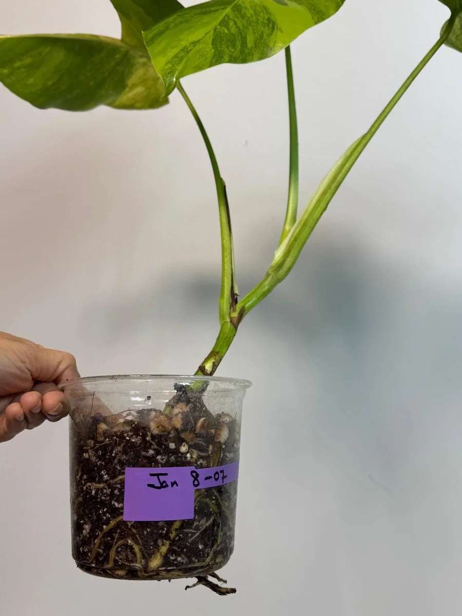The characteristic creamy yellow and green patterns on the leaves are already well-defined, promising a spectacular display as the plant grows. Expect a robust root system, indicative of a healthy and thriving plant. This tropical houseplant is propagated to ensure strong genetic traits and vibrant variegation. With consistent care, you can expect new leaves to emerge regularly during the growing season, each one a unique expression of its beautiful genetic makeup. This particular variety is a Borsigiana, which often displays a more vining growth habit compared to other Monstera deliciosa forms, making it an excellent candidate for a moss pole or trellis as it matures.