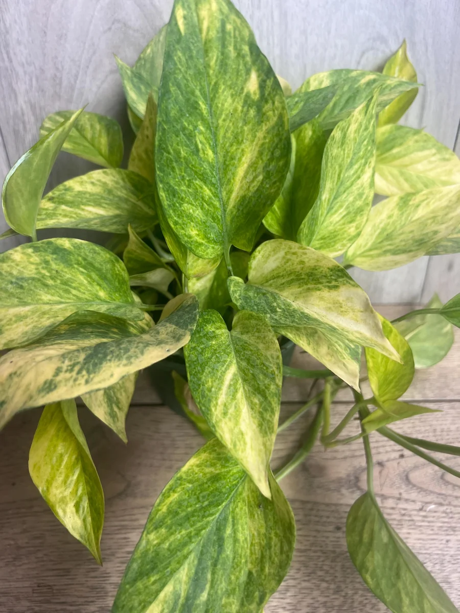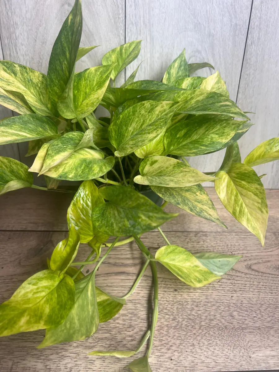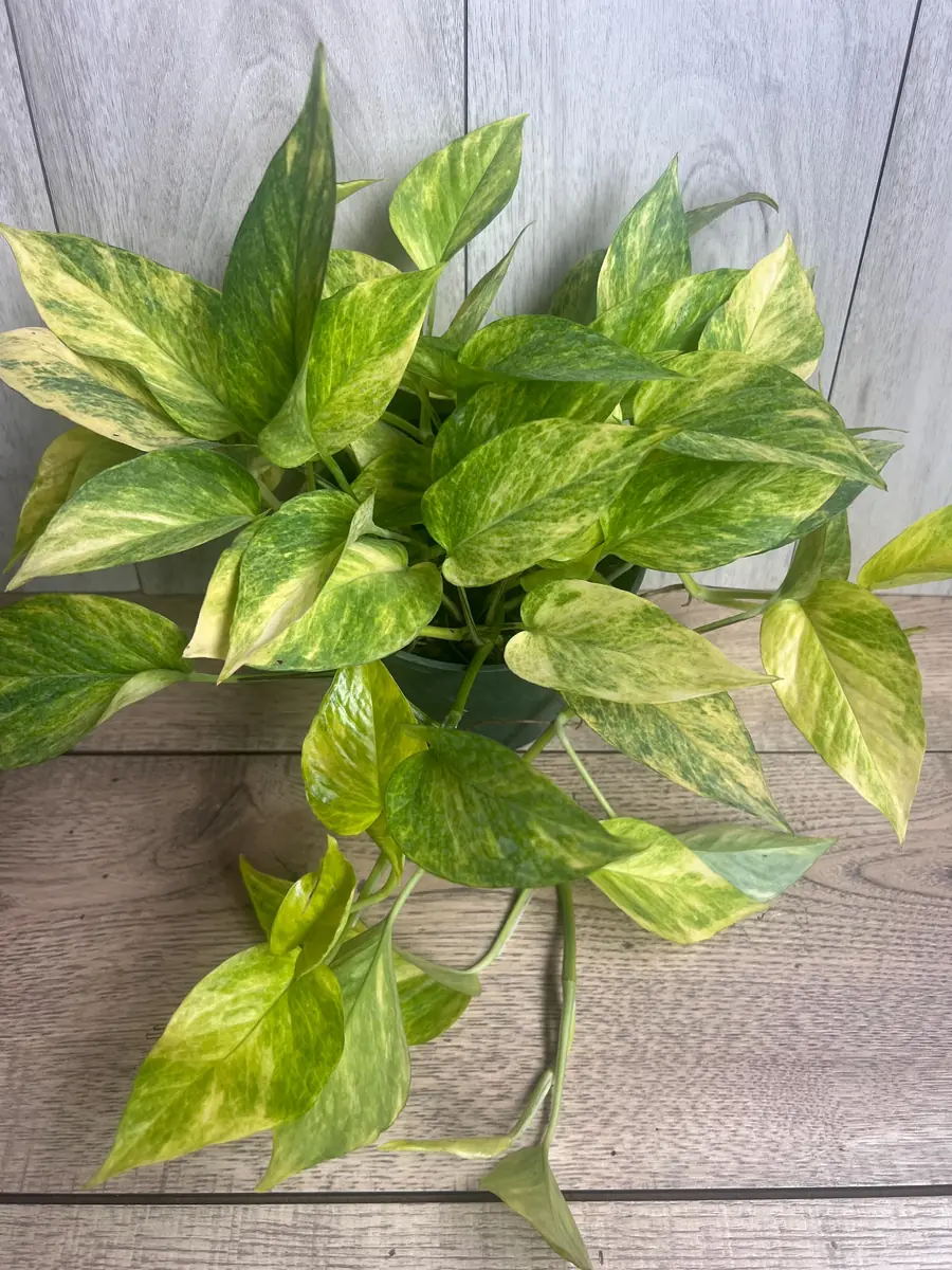 - Stunning Variegated Foliage: The heart-shaped leaves boast a unique blend of bright chartreuse and creamy white marbling, providing a dynamic and beautiful focal point in any room. This vibrant coloration ensures your easy care pothos stands out.