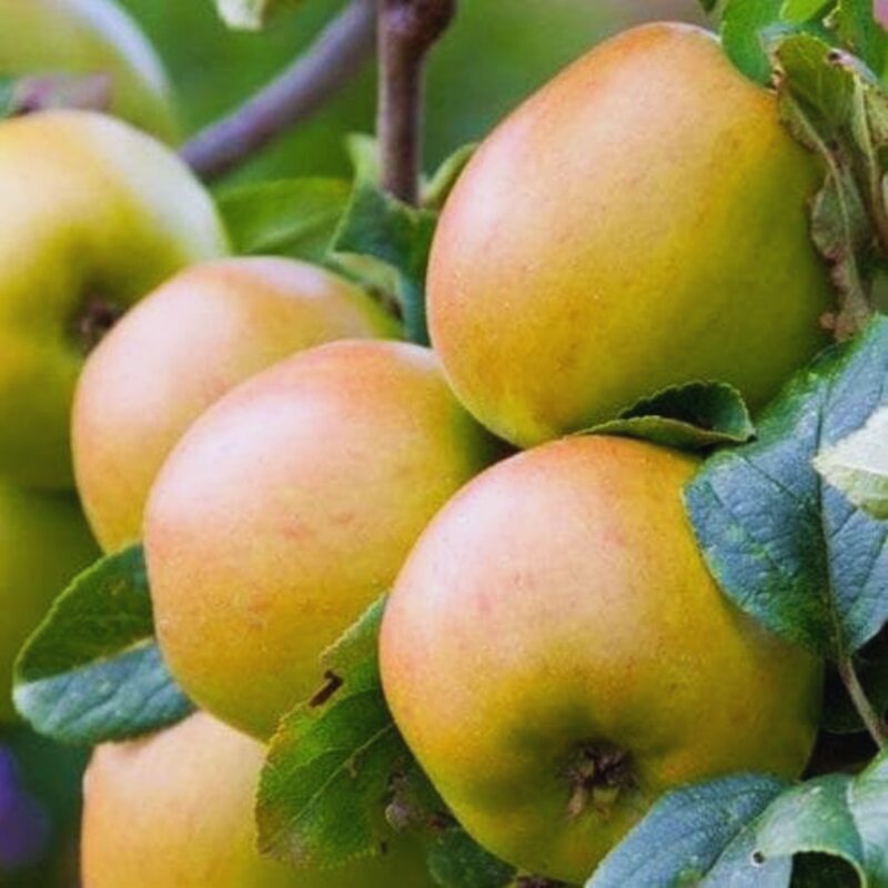 The Newtown Pippin Apple is a significant variety in American history, cultivated by notable figures like George Washington and Thomas Jefferson. This apple tree produces light green fruits that may have a yellow tinge, known for their exceptional flavor.