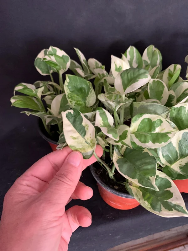 - Q: How much sunlight does it need? A: This variegated pothos plant prefers bright, indirect light. Too much direct sun can scorch its leaves, while too little light may cause the white variegation to fade or revert to green.