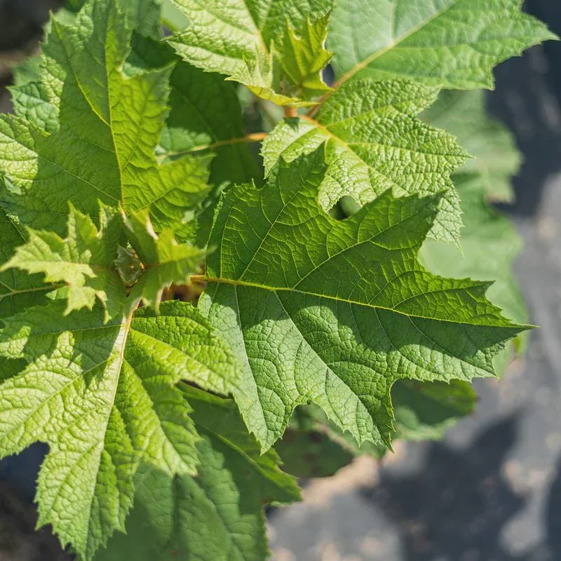 Introduce a touch of year-round elegance to your landscape with the oak leaf hydrangea live plant ‘Snow Queen’. This upright, multi-stemmed deciduous shrub, belonging to the Hydrangeaceae family, is celebrated for its unique foliage and seasonal beauty. Native to the Southeastern United States, it thrives in moist woods and stream banks, bringing a natural charm to any garden setting. The ‘Snow Queen’ cultivar is particularly prized for its robust growth and striking features, making it a favored choice among gardeners. Its leaves, reminiscent of oak tree foliage, transition from yellowish-green to deep green, with a silvery-white underside, providing textural interest throughout the growing season. As autumn arrives, these leaves transform into brilliant shades of red, bronze, and purple, creating a spectacular display that persists into winter. This shrub is not only visually appealing but also offers a resilient and adaptable option for diverse garden designs.