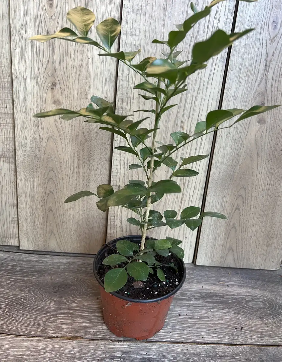 The orange jasmine live plant is a member of the Rutaceae family and is native to South Asia and Australia. It’s an excellent choice for those seeking a plant that offers continuous bloom and a delightful aroma that intensifies in the evenings. Whether you’re looking to create a fragrant hedge, a small ornamental tree, or a vibrant container plant for your patio, this Murraya paniculata is sure to impress with its year-round appeal.