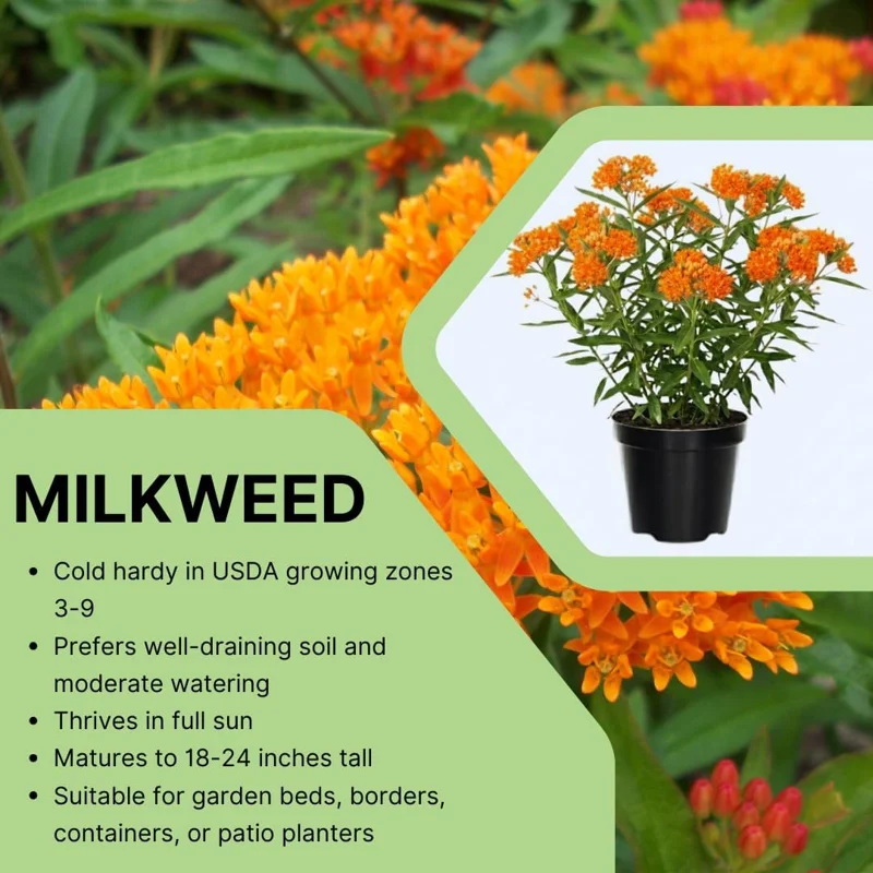 - Q: When is the best time to plant these? A: The best time to plant these milkweed plants is in the spring after the last frost, or in early fall well before the first hard frost. This allows them ample time to establish their root system.