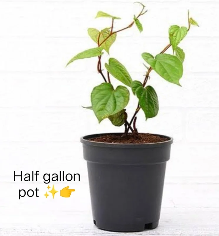 - Q: What size pot does it come in? A: The betel leaf live plant is shipped in a half-gallon nursery pot, providing a healthy root system and a good start for its growth. We recommend transplanting it into a larger pot (1-gallon or more) soon after arrival.