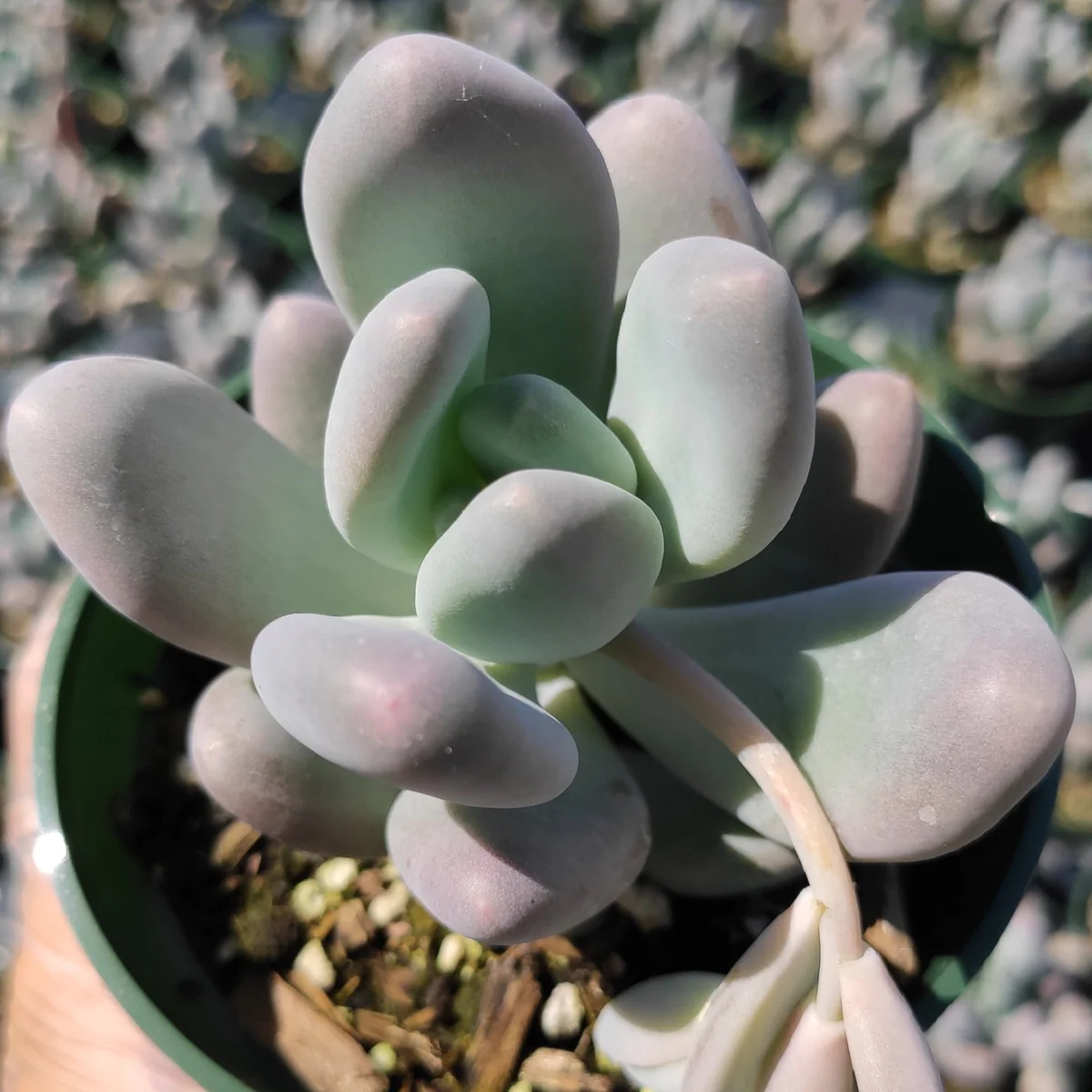 - Q: How big does this plant get? A: The Pachyphytum oviferum Pink Moonstone typically grows to about 4-6 inches in height and spread, forming a compact, charming cluster. Its size makes it ideal for small pots and arrangements.