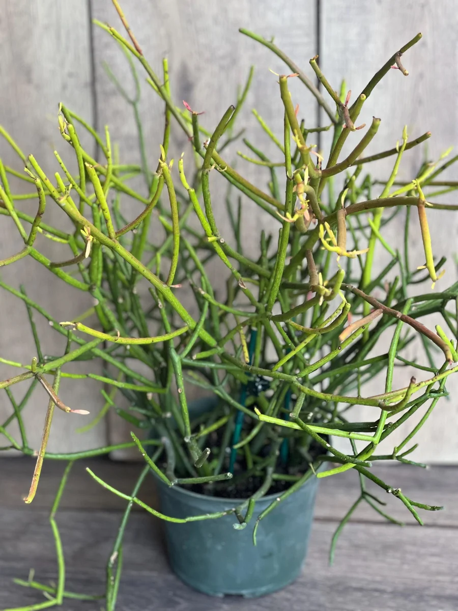 Unique Aesthetic Appeal: Its distinctive, branch-like stems create an abstract, modern sculpture-like appearance that adds a sophisticated and intriguing element to any decor. The occasional pink tips on new growth add a subtle splash of color.