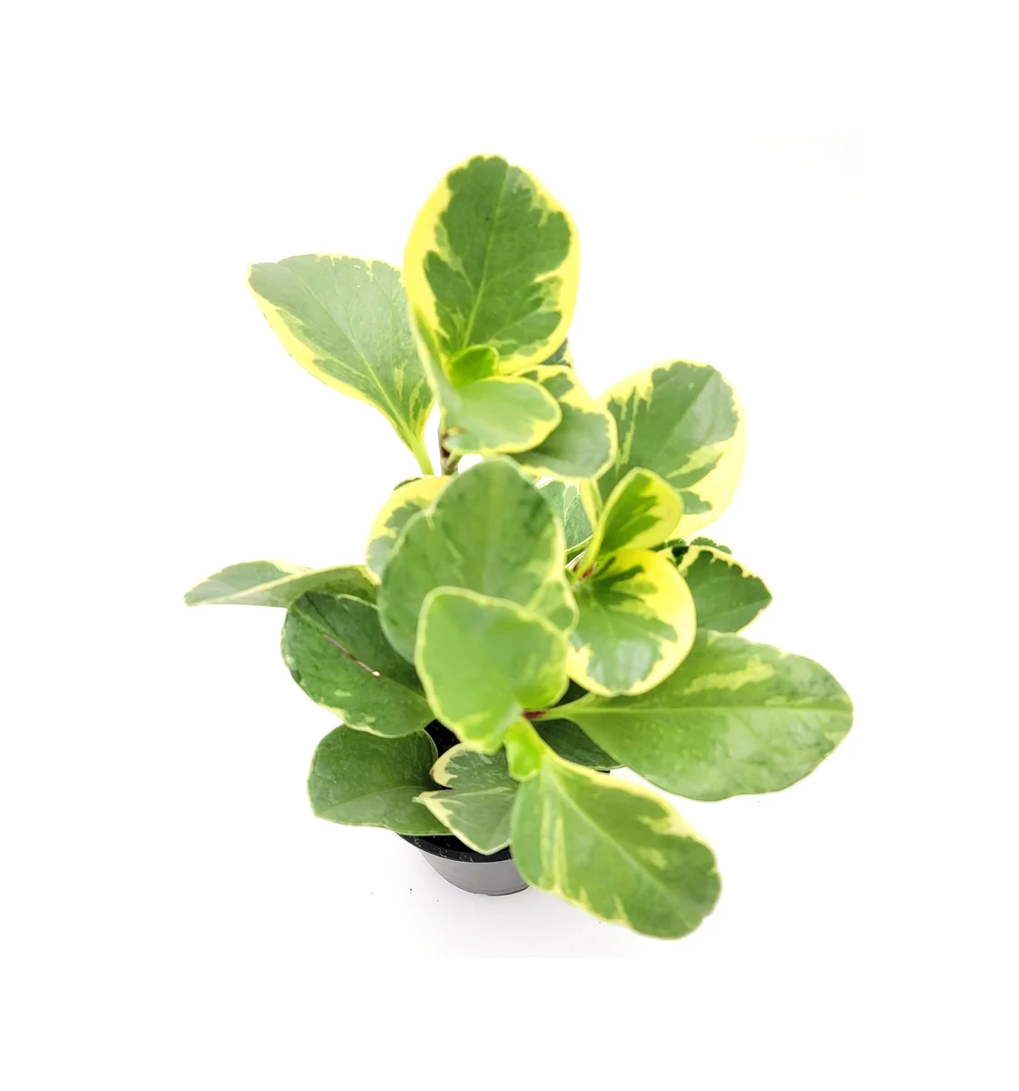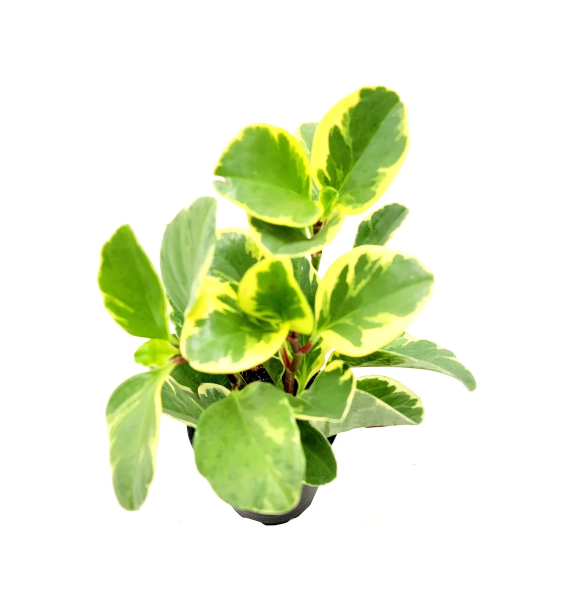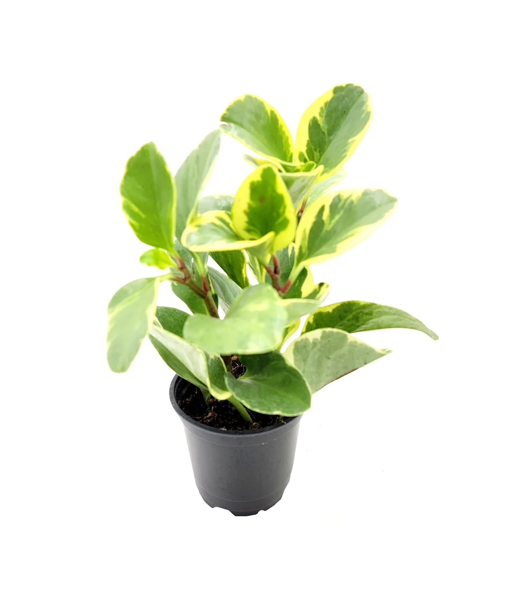 - Q: What size pot does this plant come in? A: Each Peperomia Obtusifolia Variegated live plant is provided in a standard 4-inch nursery pot, ready for you to place in your desired location or decorative planter.