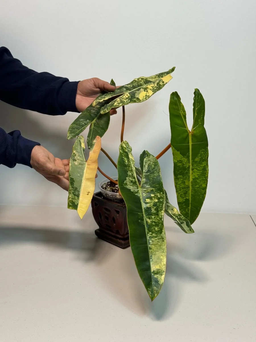 Originating from the tropical rainforests, this variegated Philodendron care is surprisingly manageable for its exotic appearance, making it a rewarding choice for both seasoned collectors and those looking to expand their plant repertoire. Its robust nature and stunning visual appeal ensure it becomes a focal point, sparking conversation and admiration. The unique patterns on its large leaf Philodendron make every specimen one-of-a-kind, promising an exclusive piece of nature’s artistry for your collection.