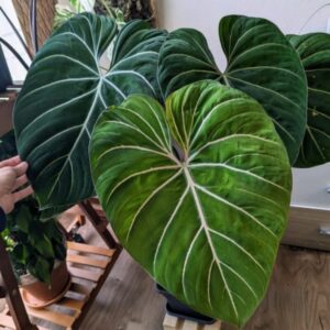 Philodendron Gloriosum is a stunning tropical plant featuring large, heart-shaped leaves and unique zebra-patterned stems.