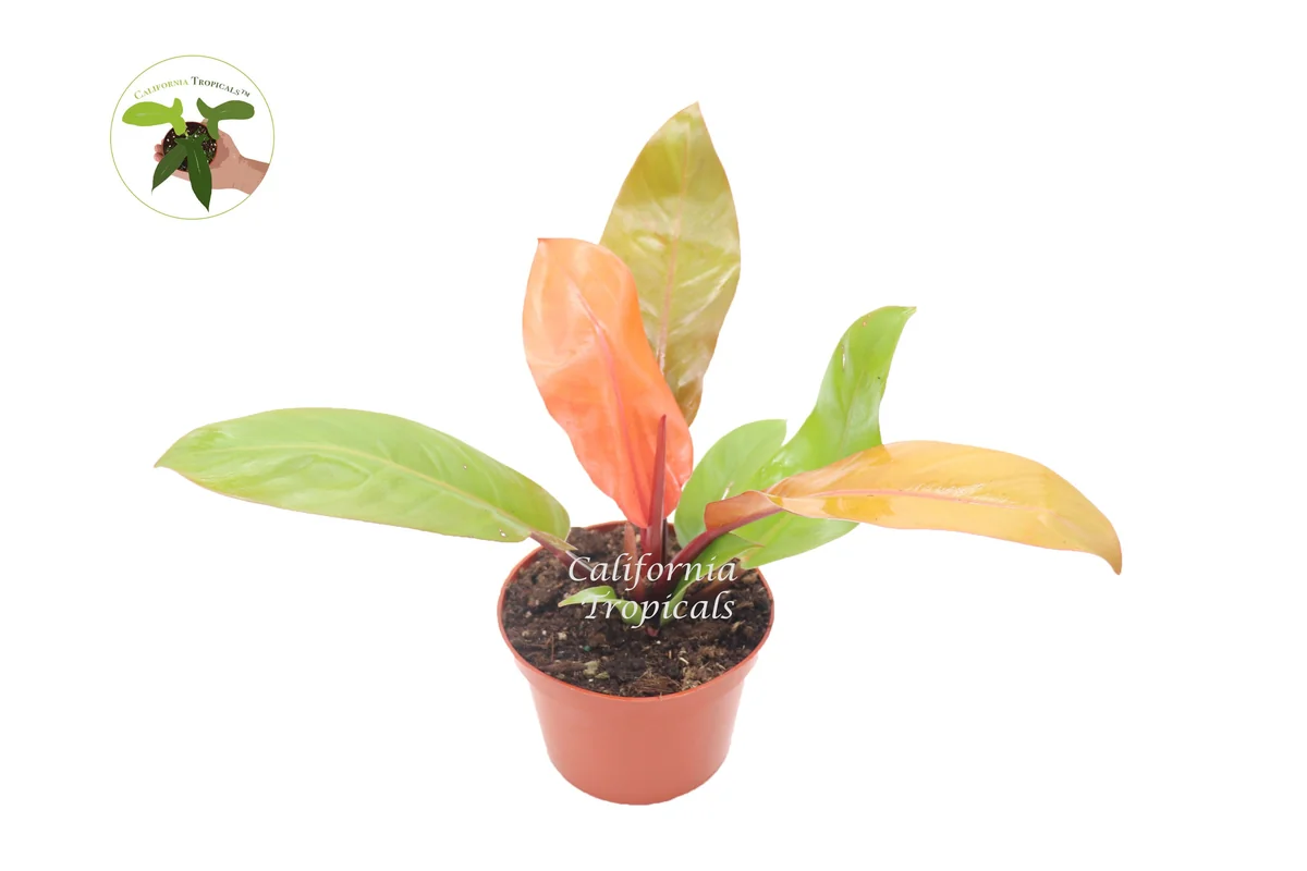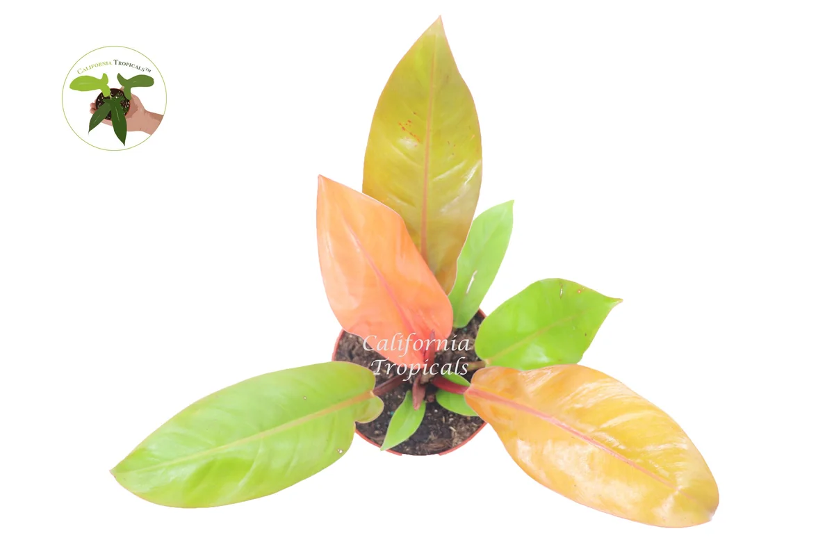 Introduce a burst of tropical color and lush foliage into your living space with the exquisite Philodendron Prince of Orange live plant. This captivating aroid is renowned for its continuously changing leaf colors, making it a dynamic and visually interesting addition to any indoor plant collection. New leaves emerge in brilliant shades of orange, gradually transitioning to copper, then lime green, and finally settling into a deep, glossy green as they mature. This unique color progression ensures a vibrant, multi-hued display at all times. As a hybrid Philodendron, the Prince of Orange is a non-vining, self-heading variety, forming an upright, bushy clump of foliage that maintains a neat and compact appearance, perfect for tabletops, shelves, or as a floor accent in smaller spaces. Its striking appearance and relatively straightforward care requirements make it a favorite among both novice and experienced plant enthusiasts looking for an eye-catching Philodendron indoor plant.