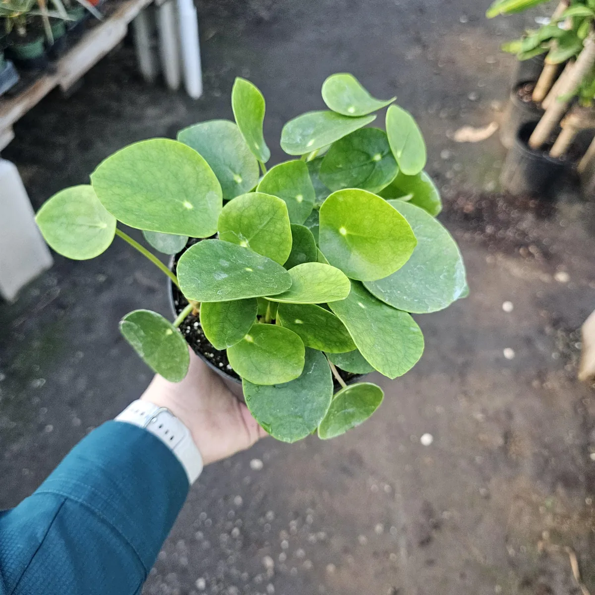 - Unique Aesthetic Appeal: The most striking feature of the Pilea Peperomioides is its perfectly circular, glossy green leaves, which resemble floating coins. This distinctive appearance adds a contemporary and whimsical touch to any interior decor, making it a conversation starter and a visual delight.