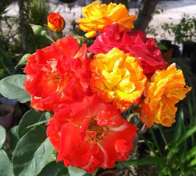 - Q: What are the main colors of the blooms? A: The flowers are a striking combination of golden yellow and orange, often with lemon yellow streaks, creating a vibrant and eye-catching display. It is truly a beautiful golden yellow orange rose.