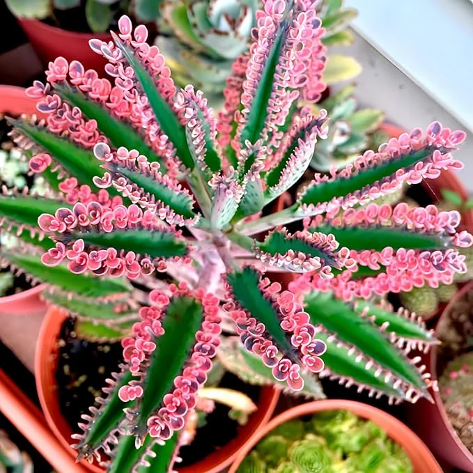 - Unique Ornamental Appeal: The most striking feature of this plant is its vibrant pink-edged plantlets that line the leaves, creating a stunning visual display. These ‘butterflies’ provide a continuous source of color and intrigue, making it a focal point in any room.