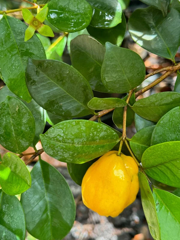 • Adaptable Growth Habit: With a mature height of 4-8 feet, this tree is suitable for various garden sizes and can even be grown successfully in containers. Its evergreen foliage ensures year-round greenery, making it an attractive ornamental plant even when not fruiting.