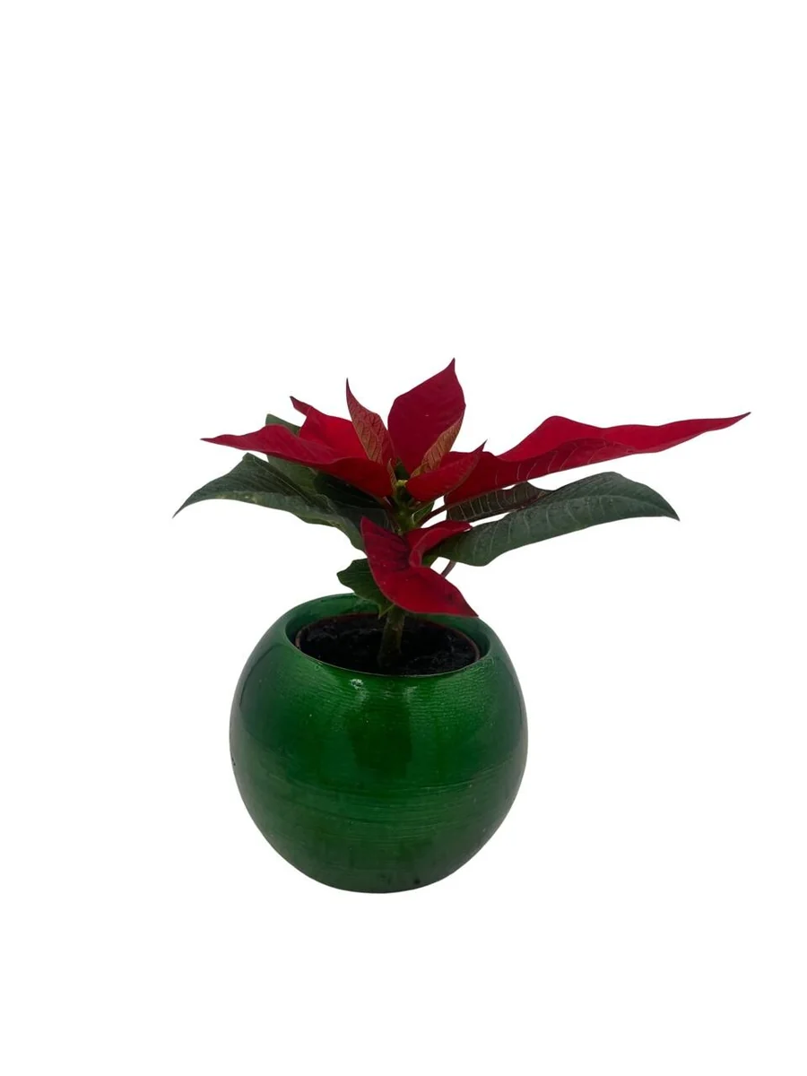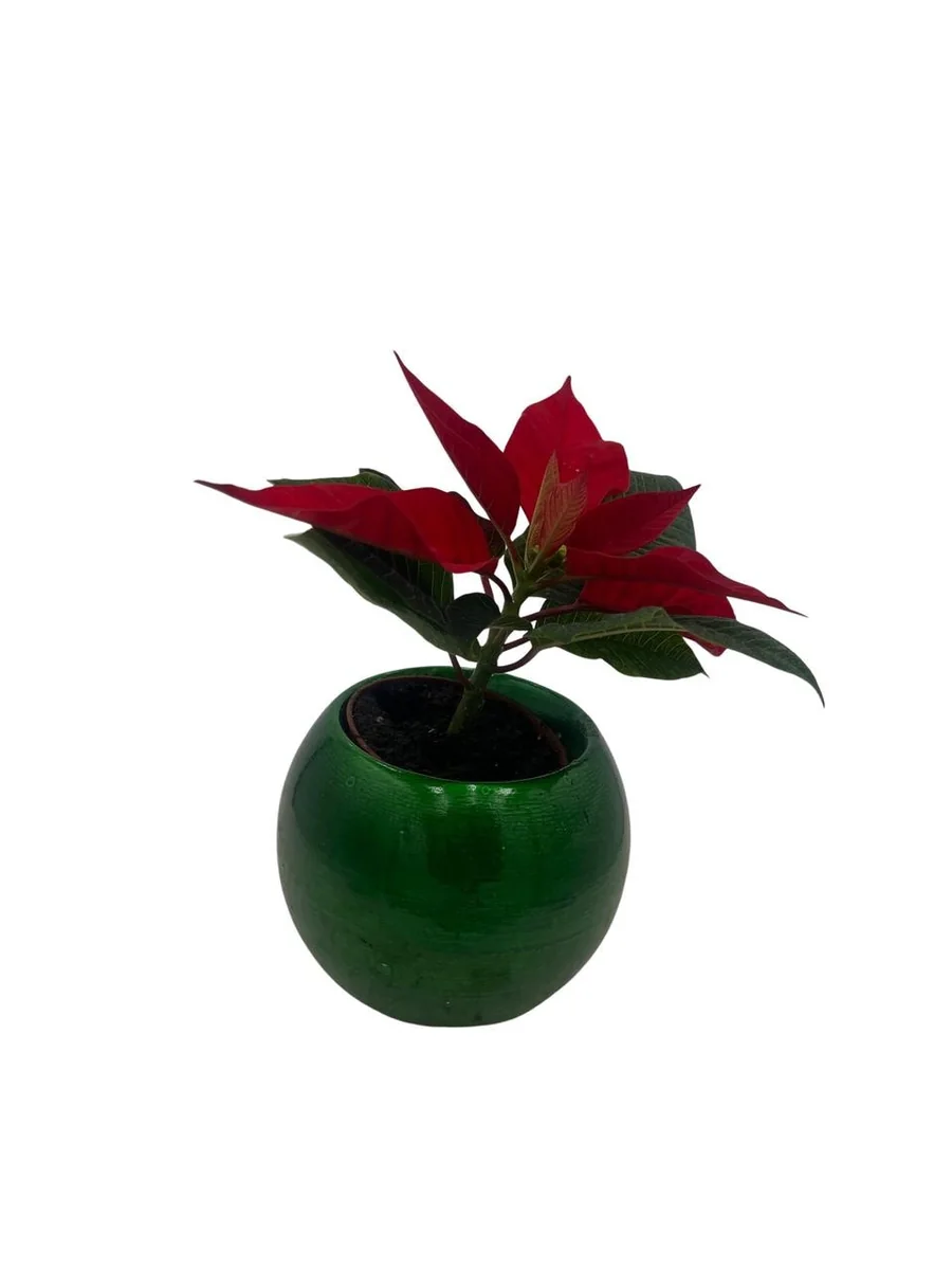 Poinsettia Live Plant in Green Globe Planter – 2 inch Pot – Festive Decor