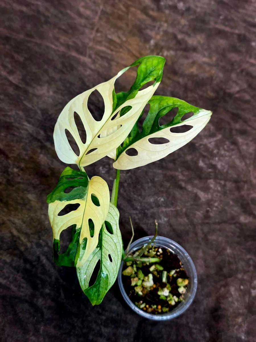 Light: Provide bright, indirect light for your Variegated Monstera Adansonii Albo. Avoid direct sunlight, as it can scorch the delicate variegated leaves. Place it near a window with filtered sunlight or in a well-lit room.