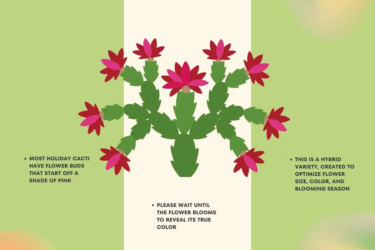 All the varieties we grow are hybrids between the Christmas and thanksgiving cactus. Breeders have taken the old varieties and made crosses to create more buds, better colors, and larger flowers. Those are the varieties we use. So, Holiday cactus seems to be an appropriate common name for this cacti! Also, we schedule the timing of the blooms to come in every week through manipulation of lighting and black cloth to create the exact conditions that initiate blooming.