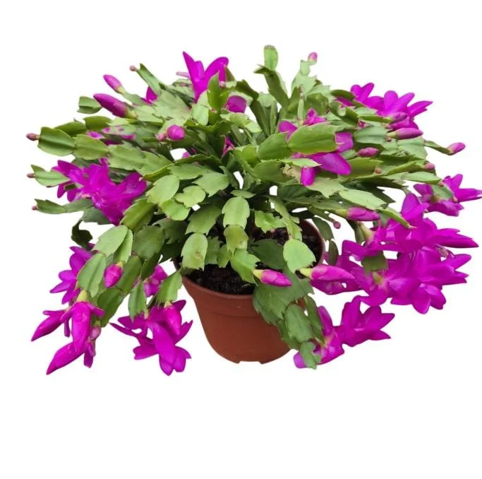 Each purple holiday cactus live plant you receive will be a healthy, established starter plant, typically measuring between 4 to 6 inches tall from the base of the soil to the tip of the foliage. These plants are shipped without buds or flowers, allowing you to experience the full joy of their blooming cycle in your own home. They come carefully packaged in a nursery pot, ready for you to transplant into your preferred decorative container upon arrival. The growth rate is moderate, and with optimal conditions, these succulents can develop into impressive, mature specimens over time.