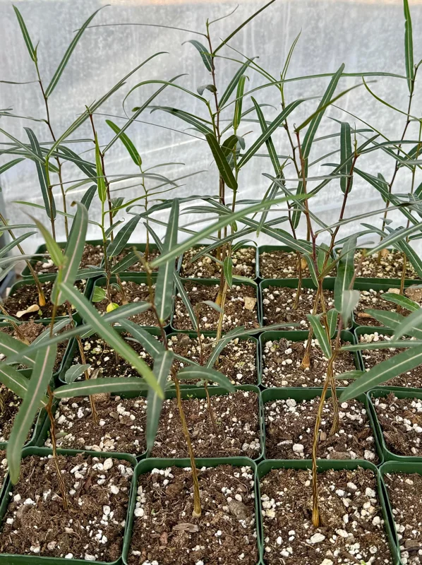 This offering is for a Queensland Bottle Tree live plant, Brachychiton rupestris, provided in a 4-inch nursery pot. At this young stage, the plant will show the beginnings of its characteristic swollen trunk, which will become more pronounced with age. When mature, the Queensland Bottle Tree live plant typically grows to a height of 60 to 65 feet in its natural habitat, though it often remains smaller when cultivated in gardens or containers, usually reaching 20-40 feet tall. Its growth rate is moderate, allowing for gradual development of its unique form. The plant is shipped as a rooted specimen, ready for transplanting into a larger pot or directly into your garden, depending on your climate and preference. Expect the development of the iconic bottle shape to become more evident over several years as the tree matures and stores water in its trunk. This bottle tree drought tolerant species is an excellent long-term addition to any landscape.