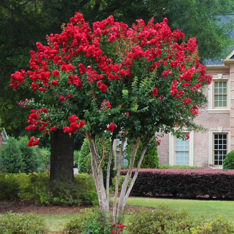 Caring for the Red Crape Myrtle is simple! Prune in late winter or early spring and use a balanced fertilizer for vigorous blooming. Ideal for both small gardens and larger landscapes, this tree enhances curb appeal while providing privacy.