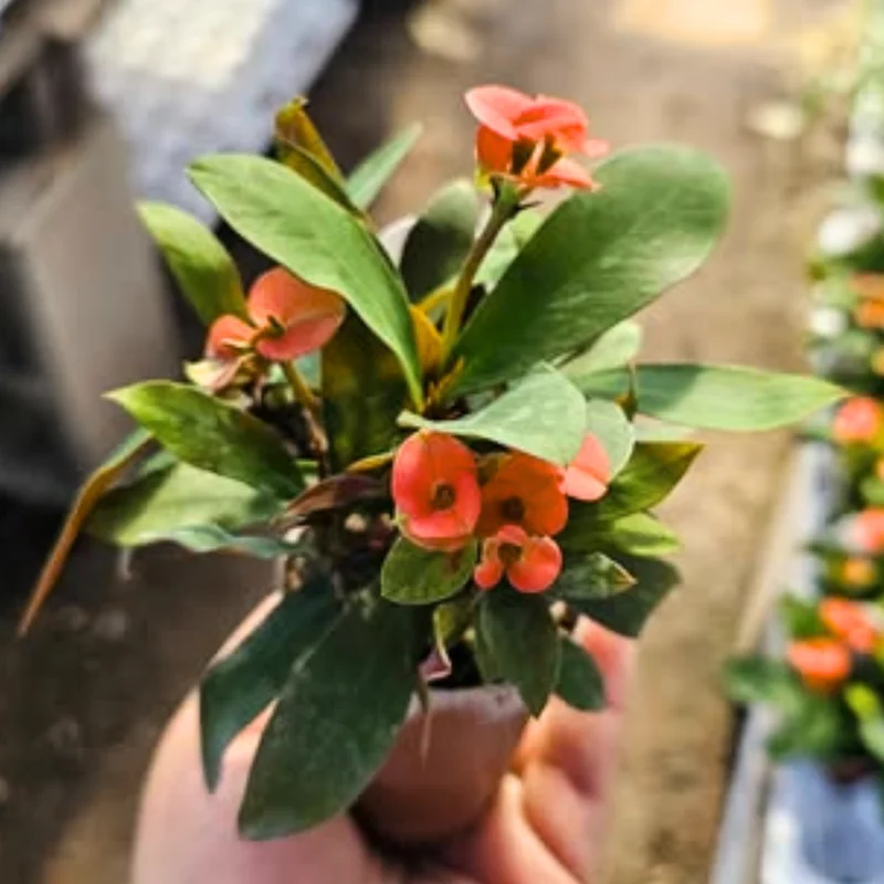 The Red Crown of Thorns Plant, scientifically known as Euphorbia Milii, is a captivating succulent that brings vibrant color and unique texture to any indoor or outdoor space. This live plant arrives in a 2-inch pot, ready to be nurtured and enjoyed. Its striking red blooms and easy-care nature make it a favorite among plant enthusiasts of all levels.