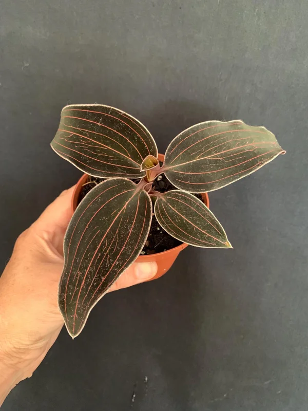 Elevate your indoor plant collection with the exquisite Red Jewel Orchid Ludisia Discolor, a truly captivating live plant renowned for its unique and luxurious foliage. Commonly known as the Jewel Orchid, this terrestrial orchid is native to the forest floors of Southern China, Northeast India, Thailand, Vietnam, and other Southeast Asian regions. Unlike many orchids prized for their blooms, the Red Jewel Orchid Ludisia Discolor stands out for its extraordinary leaves. Its velvety, deep maroon to dark red foliage, adorned with intricate red veins running parallel to the center, creates a stunning visual display that resembles a precious jewel. This rare variegated orchid is a must-have for collectors and enthusiasts seeking a distinctive tropical plant.