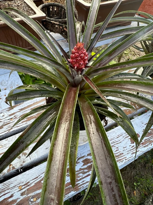 - Q: How long until it blooms or fruits? A: Ornamental pineapple plants typically take 1-2 years to produce their decorative red pineapple fruit from the time of planting, though this can vary based on growing conditions and maturity.